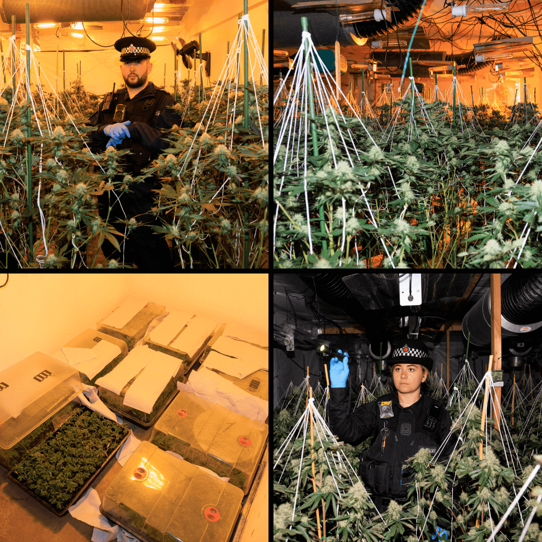 Following extensive intelligence gathering, supported by thermal imaging footage from a police drone, officers struck at 7am and located the grow, which was housing thousands of plants.