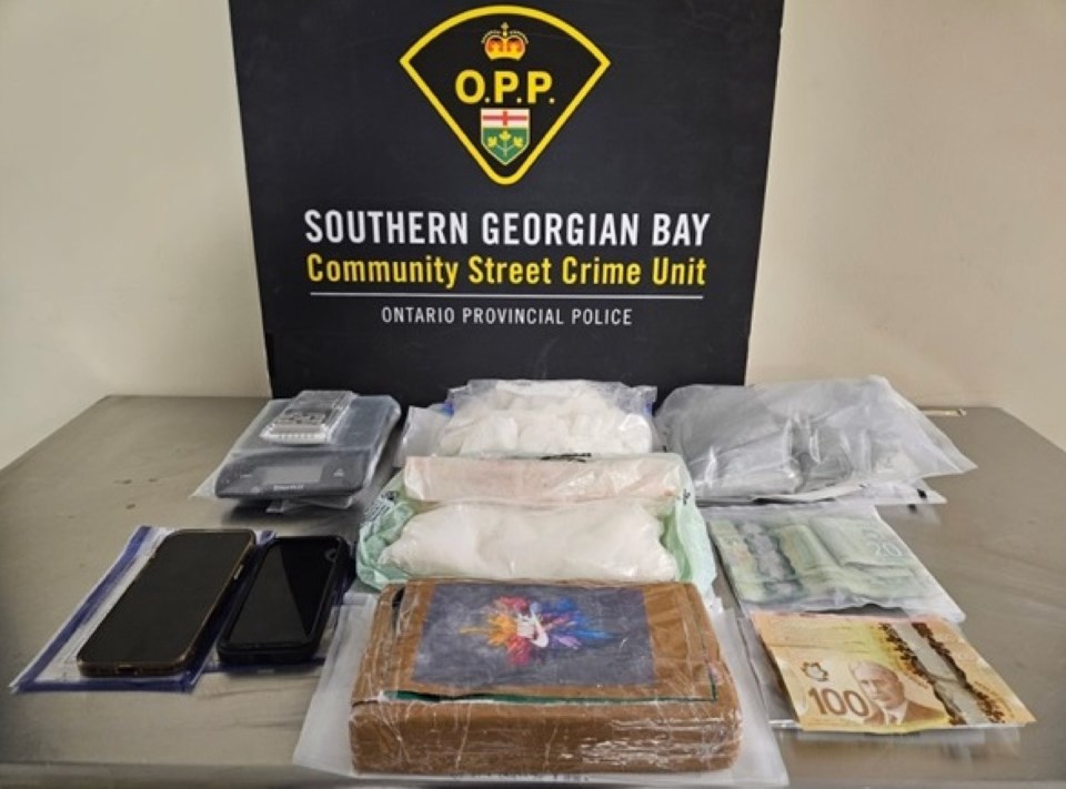Police seized “multiple kilograms” of suspected cocaine and crystal methamphetamine, as well as “items consistent with the sale and trafficking of drugs,” including cellphones, money, digital scales, and a vacuum sealer, Southern Georgian Bay OPP said in a news release.