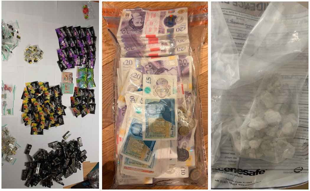 At the address, officers discovered Class A drugs including heroin and cocaine, as well as significant amounts of cannabis, cannabis edibles and magic mushrooms. Equipment commonly associated with drug dealing was also recovered. Alongside the drugs, detectives found bundles of cash and valuable items believed to be linked to illegal sales.
